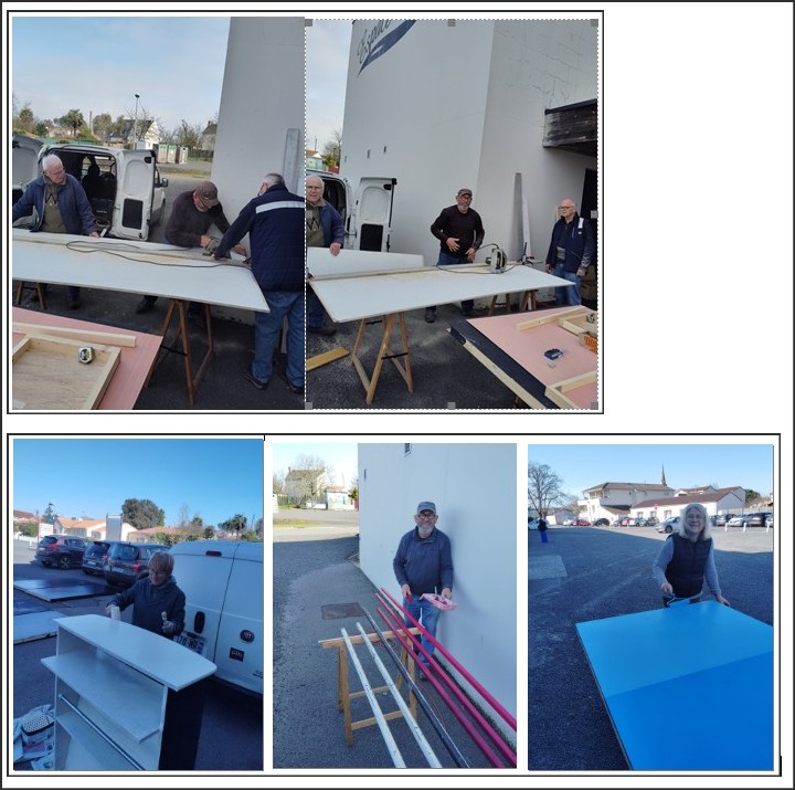 Lundi 2 mars, préparation des décors pour notre nouvelle pièce. Du bleu, encore du bleu pour notre belle croisière !